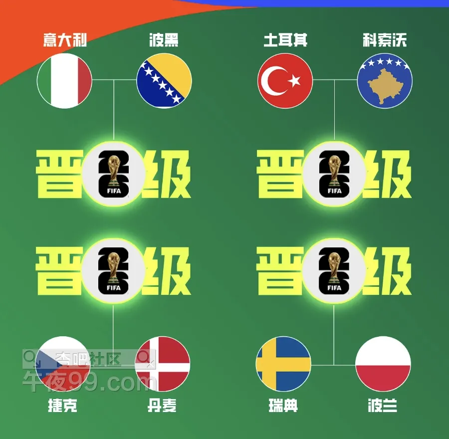 [|足球快报] 世欧预综述:决赛意大利对波黑,波兰战瑞典,丹麦对阵捷克 |